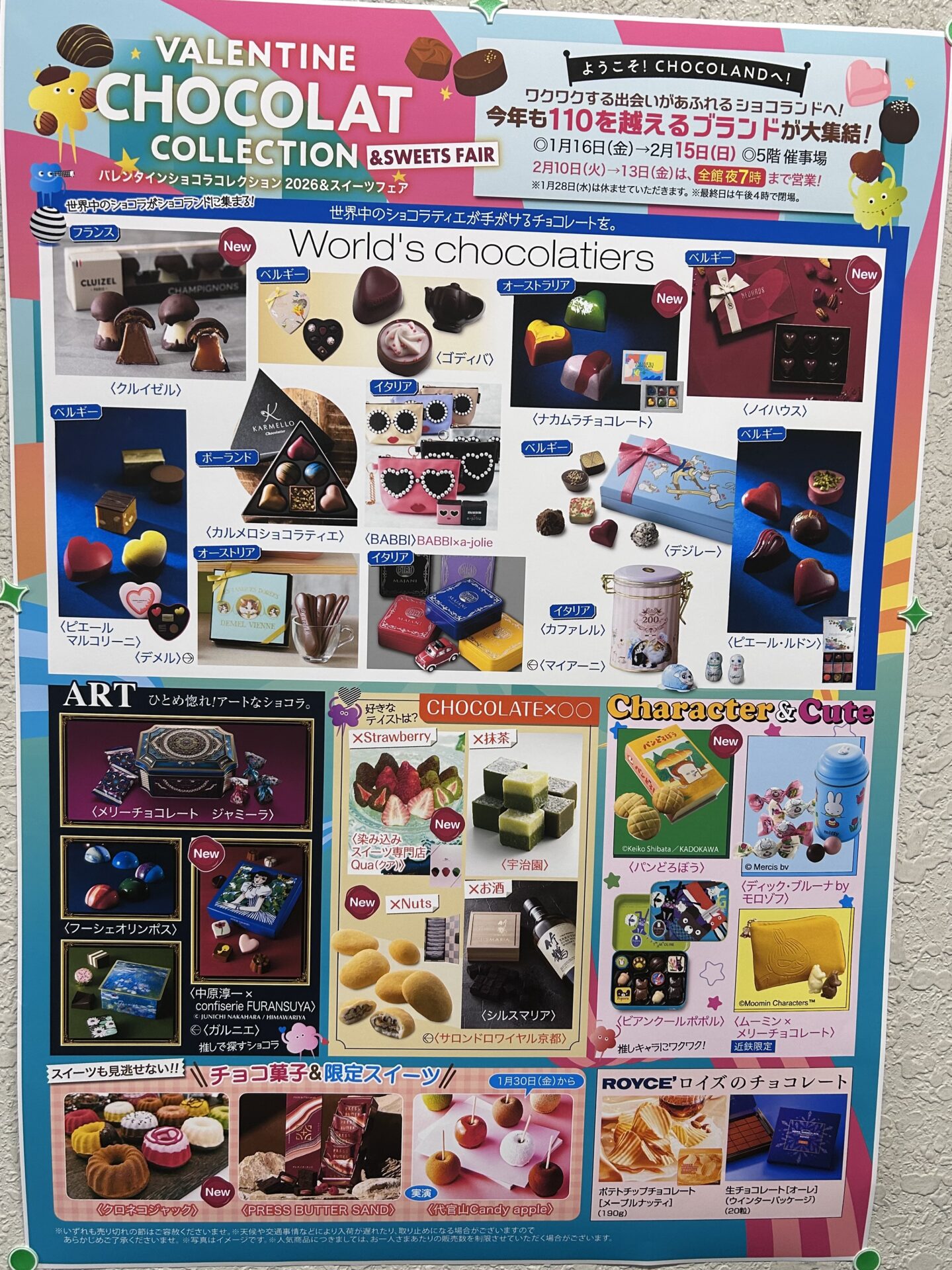 みな様こんにちは。 メゾン・ド・マルシェ和歌山店です。 近鉄百貨店和歌山店5階催事場にて1/16〜2/25まで 「バレンタインショコラコレクション2026」を開催いたします。 今年も110を超えるショコラブ・・・