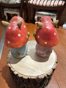 きのこのかさを被った姿がなんとも愛らしいオブジェです!