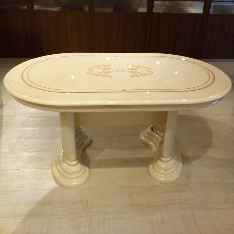 天板はオーバル型で、ユリの花をイメージした大胆なモチーフが印象的です。