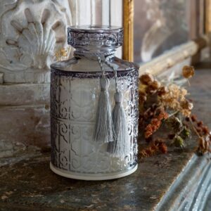 『マチルドエム(Mathilde M)』は、18世紀のフランス邸宅にインスパイアされたエレガントな世界観を表現したデザインがとても素敵なのですが、こちらのディフューザーも、ガラスのカバーが、ヨーロッパの邸宅の外壁や、ロートアイアンの門扉を思わせるような、クラシカルで上品なデザインになっています。