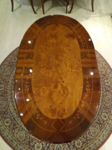 イタリアの職人による象嵌細工は一層高級感を増して素晴らしい天板に仕上がっています。