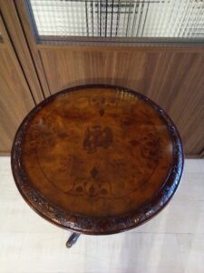 重厚な趣で、エキゾチックな木目に施される象嵌やモザイク―