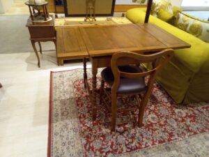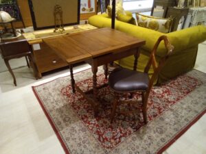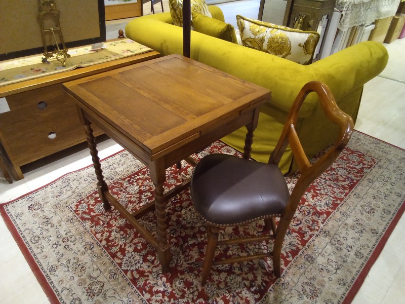 セットにしている小ぶりのチェアとも相性ピッタリで、セットで展示しております。