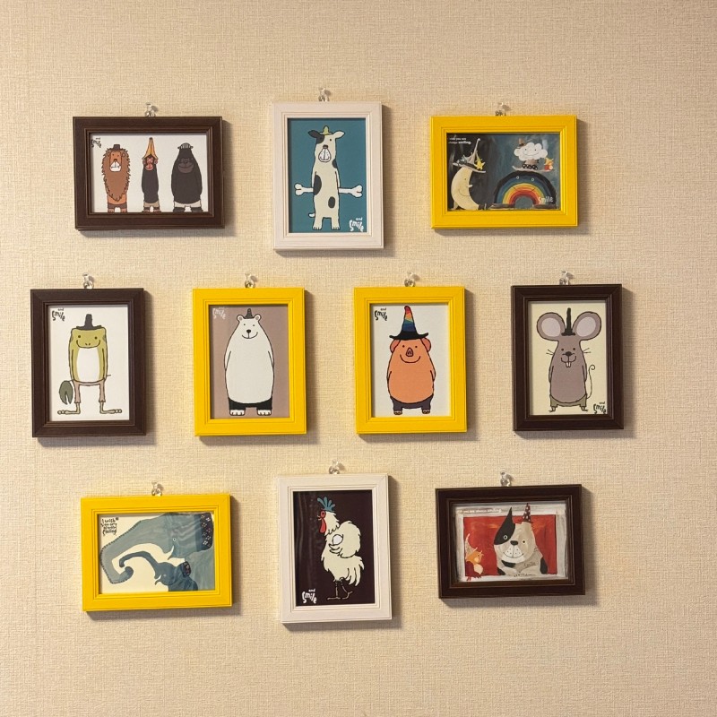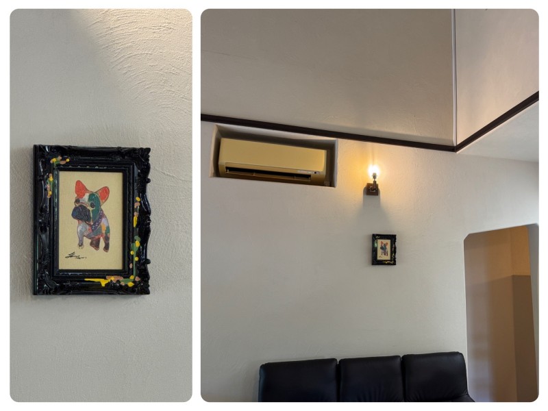今回の飾りつけは普段弊店ではお取り扱いしていないような、小さな額絵を沢山掛けさせていただいたりと、お宿の雰囲気に合わせたご提案をさせていただきました。
