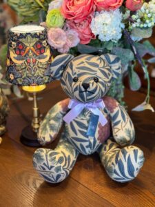 今日ご紹介するのは、ランプを作るのが目的で仕入れられた生地、その余りをつかって一つ一つ丁寧に手作りされたベアです。まさに小さなものにも心を寄せるモリスの考えが生きているお品といえます。