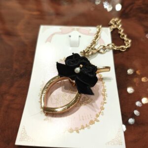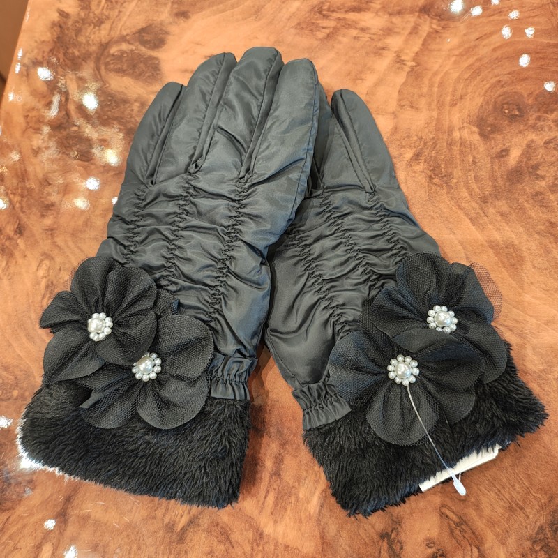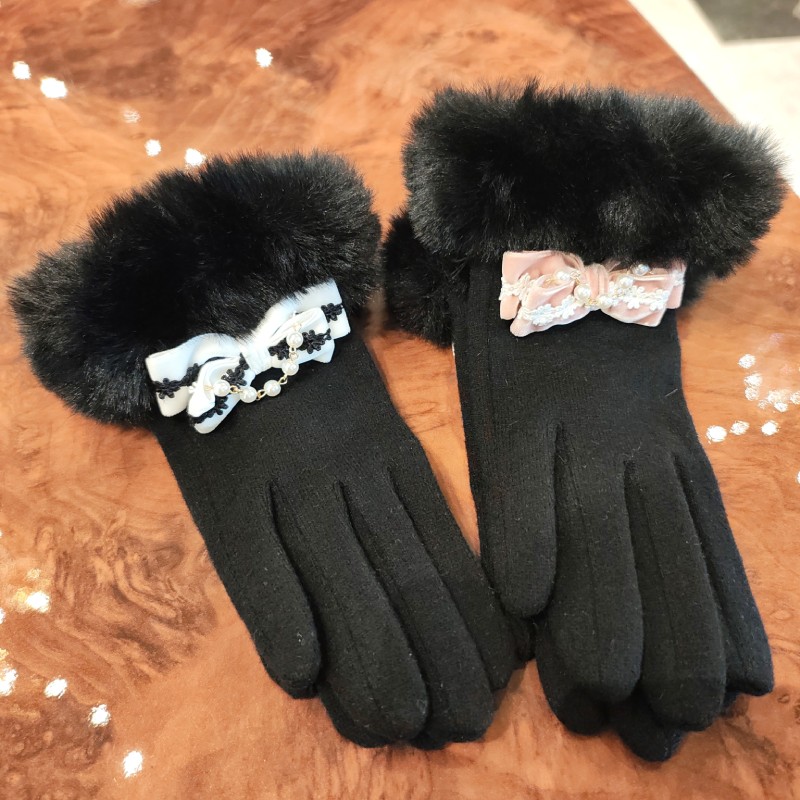 ホワイトとピンクのリボンがキュートなブラックカラーの手袋。