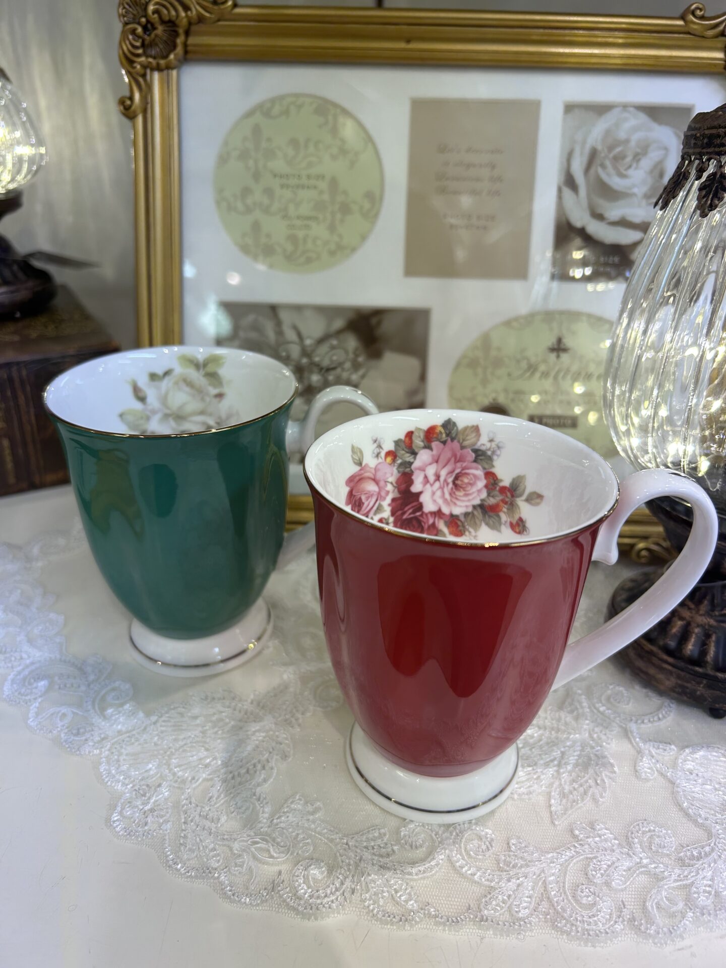 内側にはバラの模様がプリントされていてとてもきれいで華やかなマグカップです。