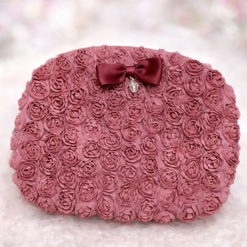 ピンクのバラがぎゅっと集まったような、愛らしいデザインのポーチは