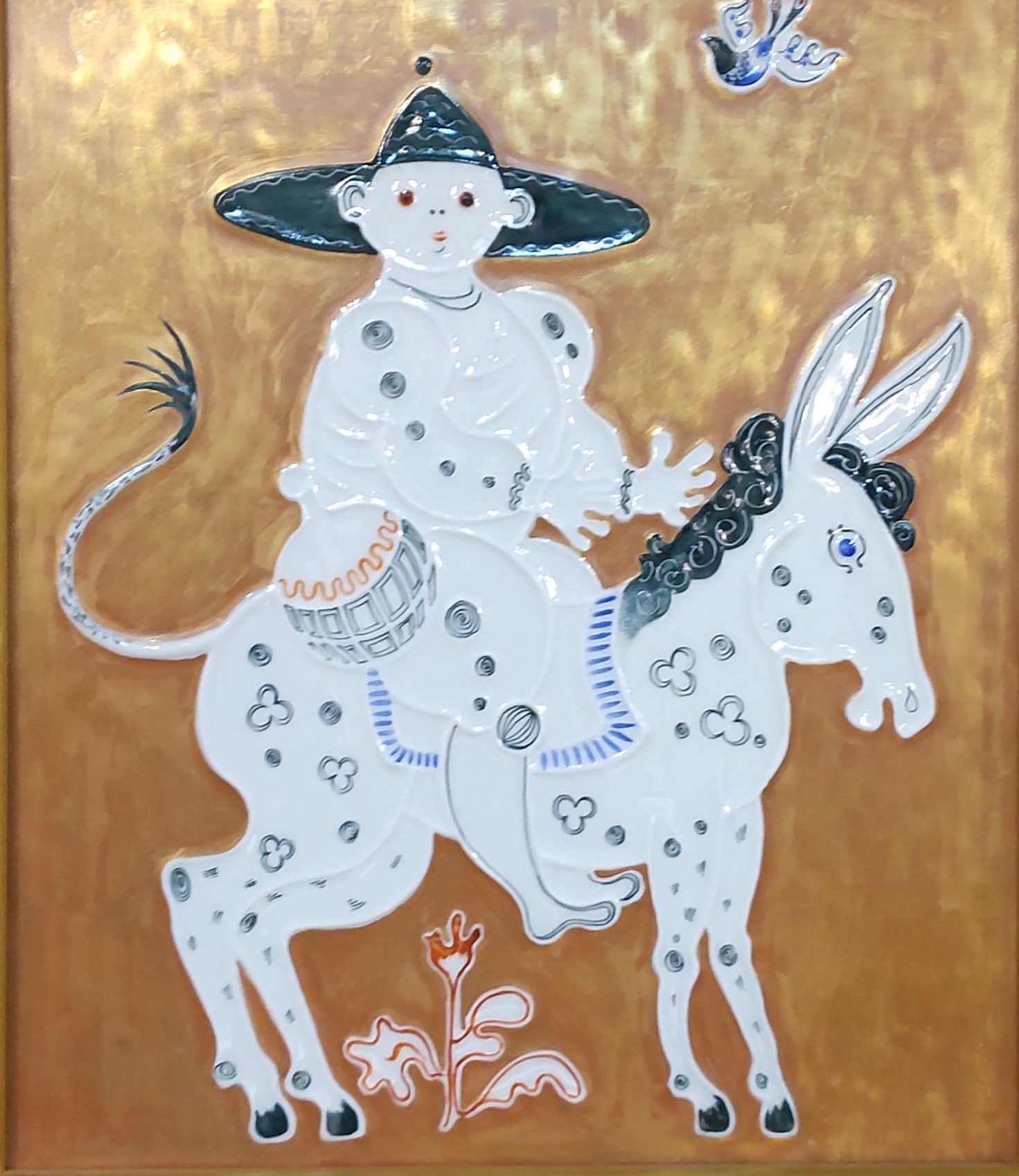 スペインの小説『 ドン・キホーテ』 に登場するサンチョ・パンサをモデルにした陶板画。