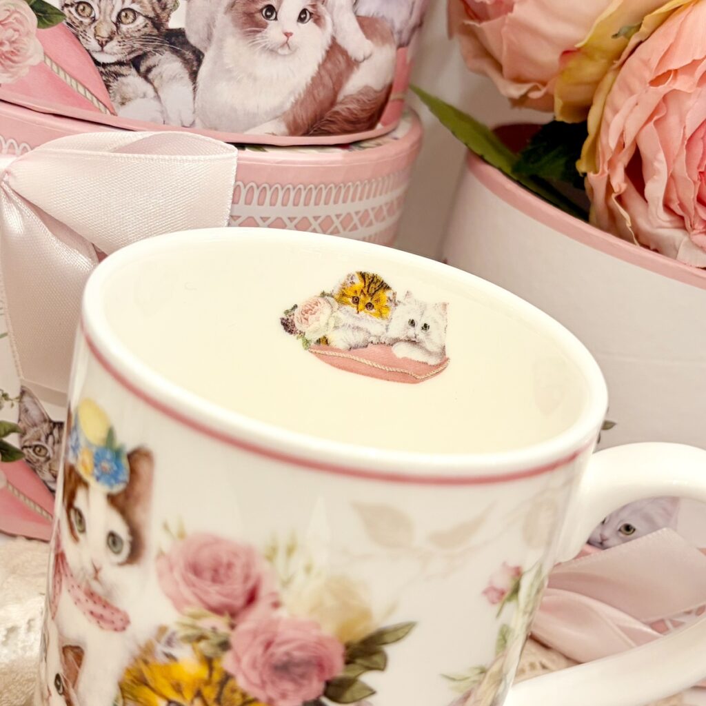 カップの内側にも猫のイラストがあしらわれており、