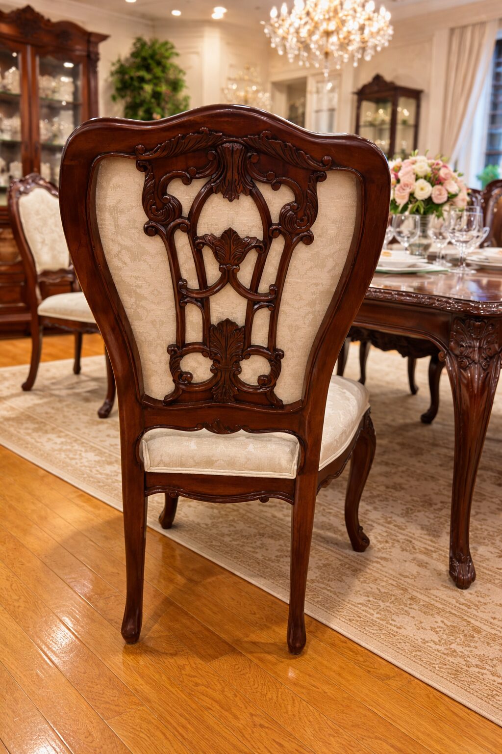 チェアの背面に施された繊細な彫刻もとても美しく、