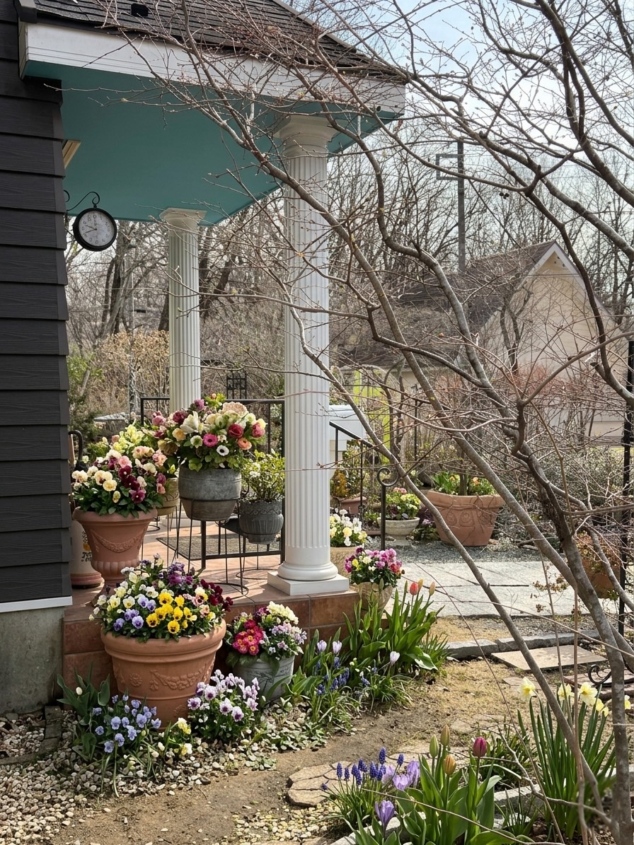 • アイアンの意匠が引き立てる寄せ植えの美しさ