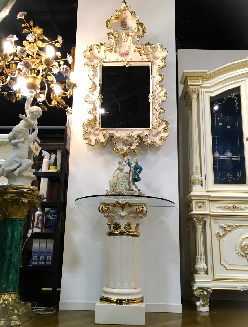 みなさま、こんにちは。メゾン・ド・マルシェ神戸店です♪ 朝晩の冷え込みで冬の到来を感じる季節になってきましたね。 今回は店内でもひときわ目を引く【Ahura(アウラ)】のコンソール&ミラーのご紹介です。 Ahuraは躍動・・・
