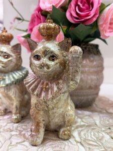 みな様こんにちは。 メゾン・ド・マルシェ和歌山店です。 おしゃれな招き猫「ウェルカム&ラッキーキャット」 が新しく入荷いたしました。 頭に王冠を被り、首にはラップル襟と クロスのネックレスをつけた ・・・