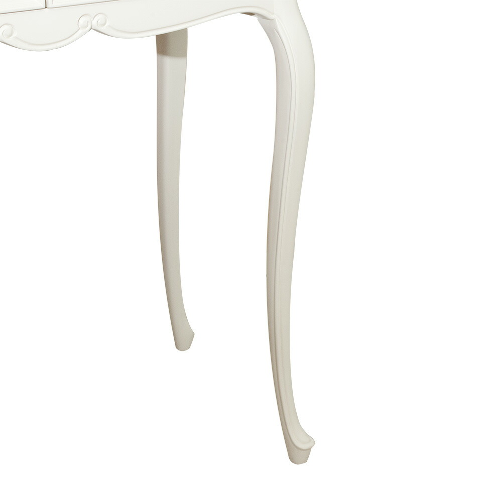 ゆるやかにカーブした柔らかなラインとカブリオールレッグ(猫脚)と彫刻が上品な雰囲気と可愛らしさを際立たせています。