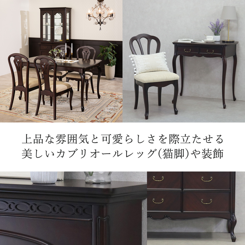 ゆるやかにカーブした柔らかなラインとカブリオールレッグ(猫脚)と彫刻が上品な雰囲気と可愛らしさを際立たせています。