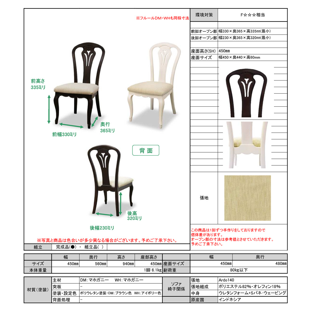 フルールDM チェア-B ダークブラウン 幅45cm / 東海家具