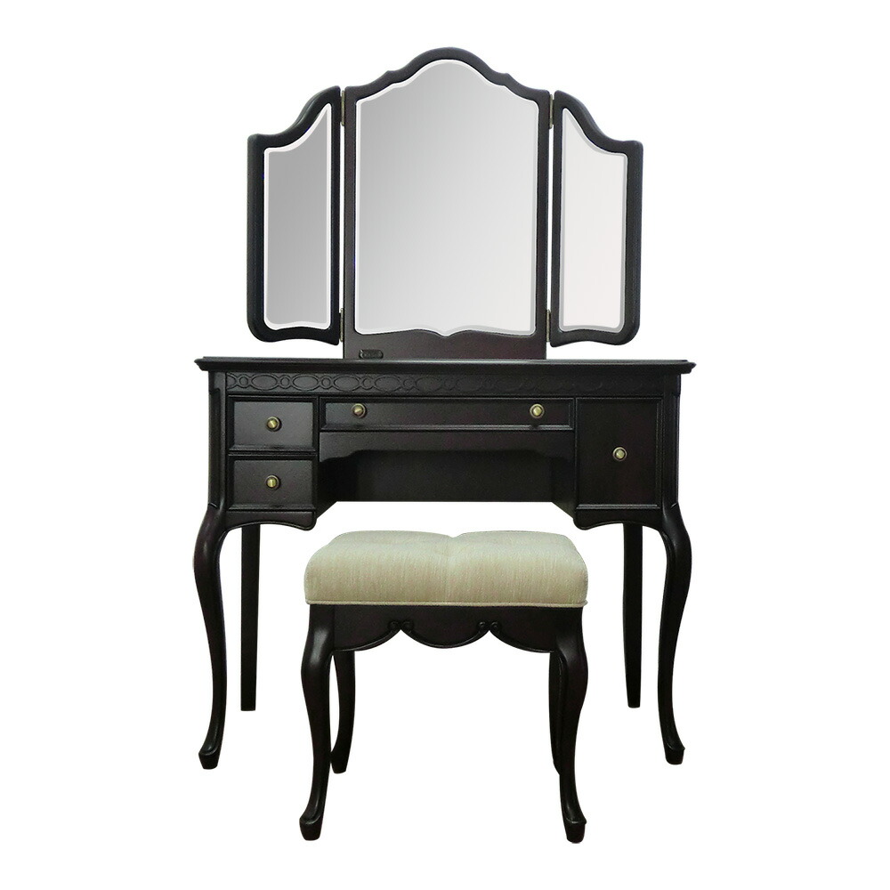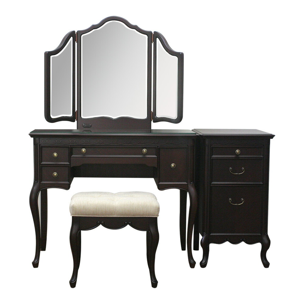 フルールDM ドレッサー スツール付き ダークブラウン 幅90cm