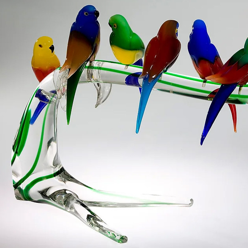 イタリア製 ザネッティ カラフルなセキセイインコ6羽の高枝飾り AZ46 / Zanetti Murano