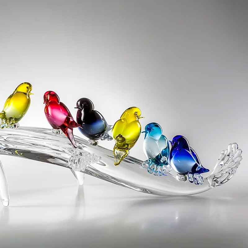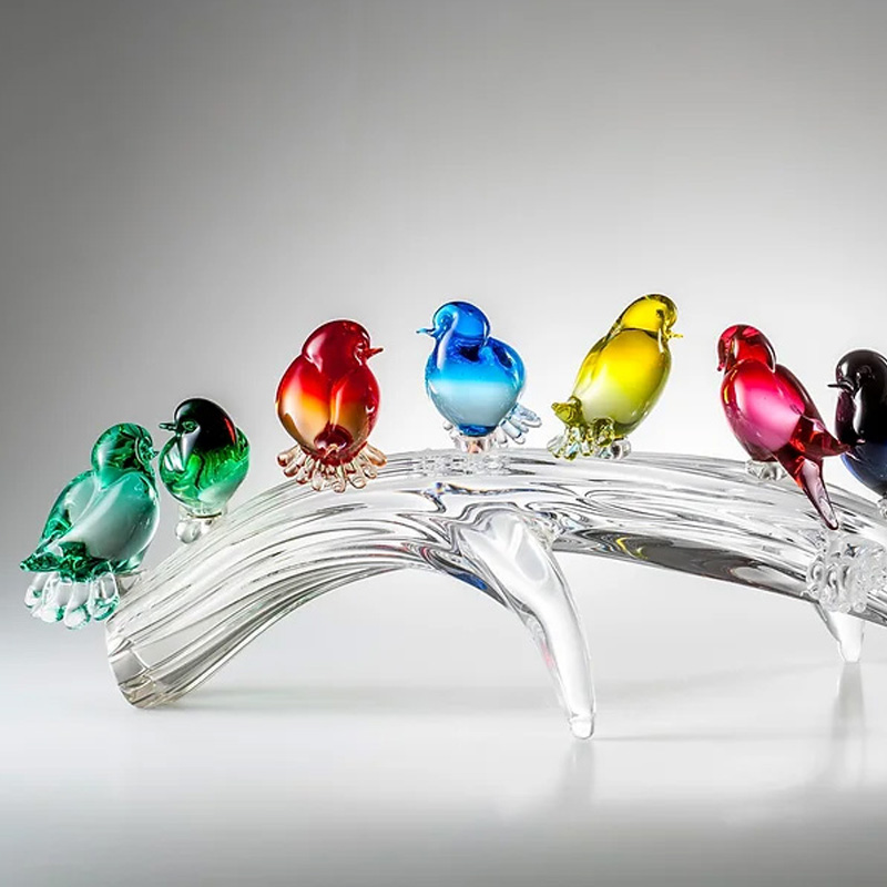 イタリア製 ザネッティ カラフルな小鳥10羽の低い枝飾り AZ5-10-T / Zanetti Murano