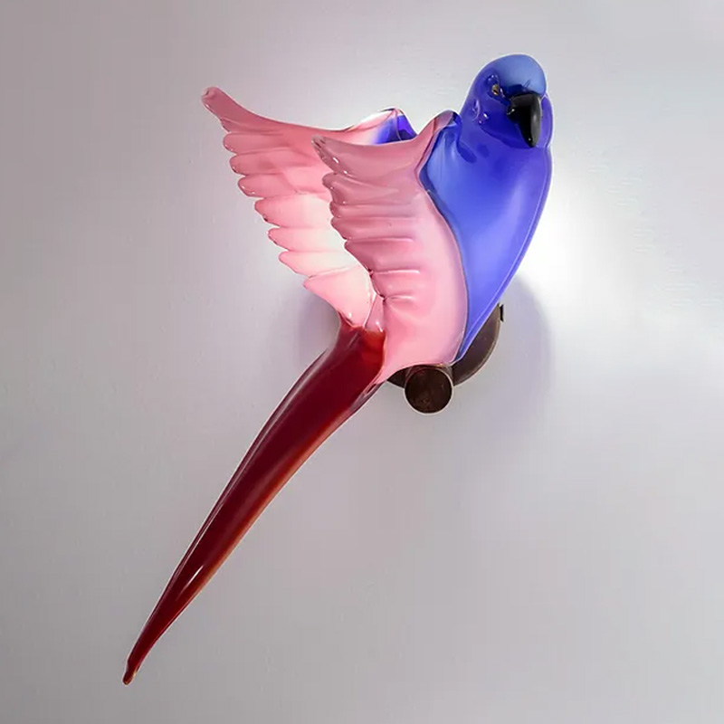 イタリア製 ザネッティ 鳥(ブルー×ピンク×レッド/翼広げ) CO-BPR / Zanetti Murano