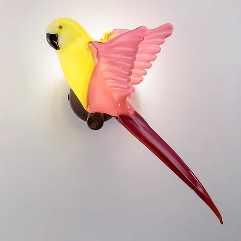 イタリア製 ザネッティ 鳥(イエロー×ピンク×レッド/翼広げ) CO-YPR / Zanetti Murano