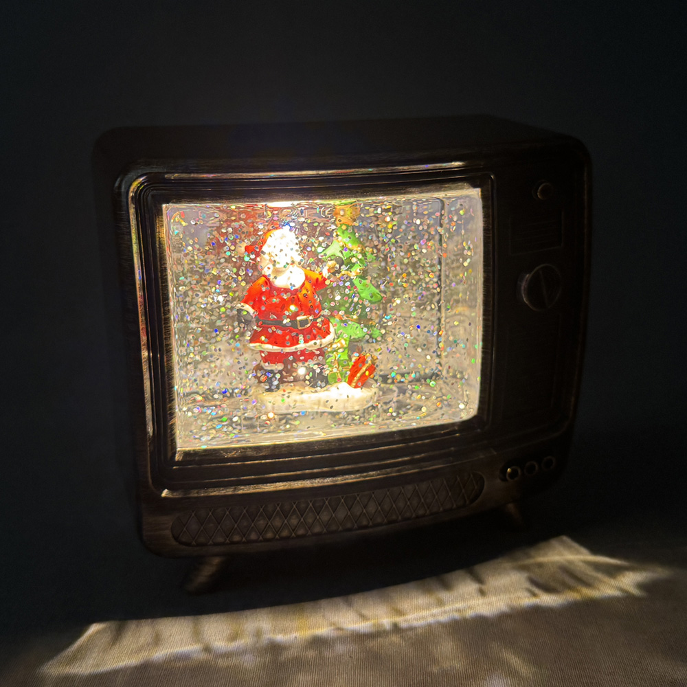 クリスマス スノーイング テレビ ライトランタン ミュージック付き 幅14cm