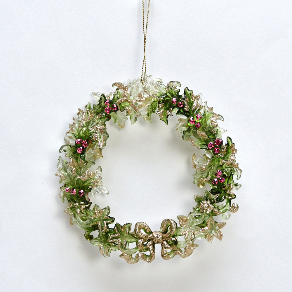 クリスマス オーナメント ミニリース クリア グリーンリーフ×ピンク 直径13cm / ハルモニア