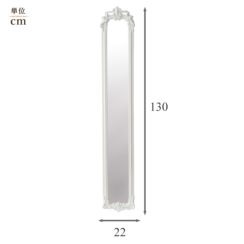 クラシック調 ウォールミラー スリム 高さ130cm ホワイト 70658