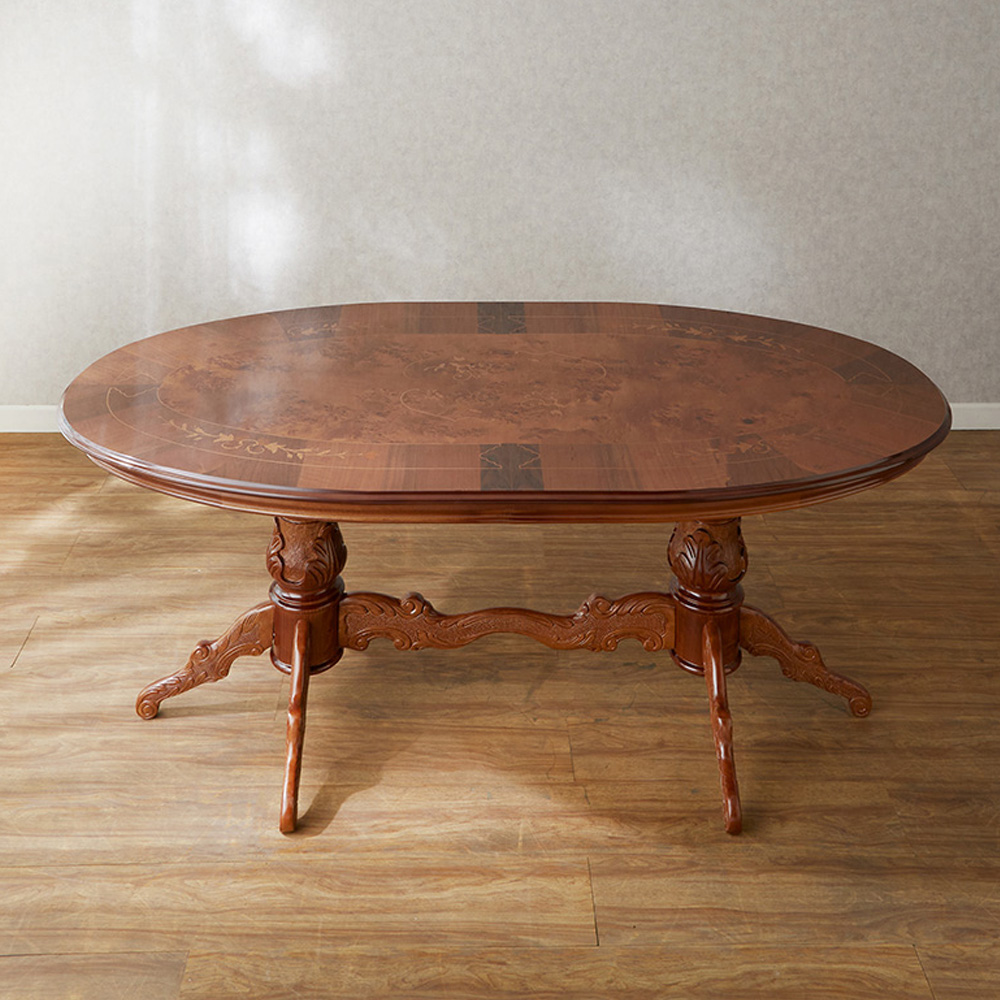 HOME > 商品 > 商品カテゴリー/家具 > テーブル > ダイニングテーブル > イタリア製 象嵌ダイニングテーブル ラグビーボール型 幅180cm 【UV塗装】