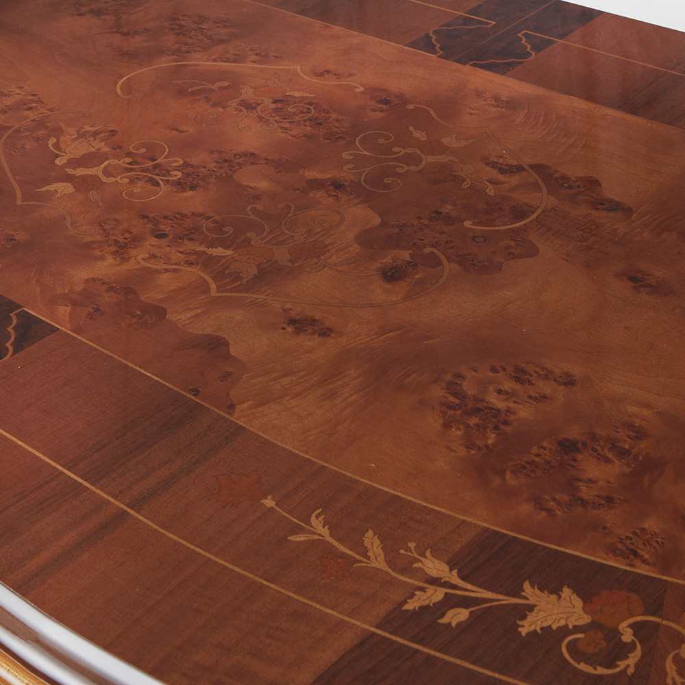 イタリア製 象嵌ダイニングテーブル ラグビーボール型 幅180cm 【UV塗装】