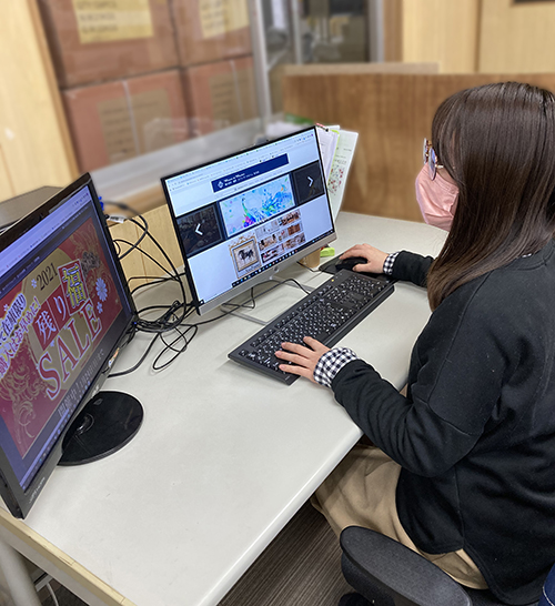 お客様に伝える仕事を任されています。 制作物のデザインは感性に寄るところが大きく、 個人の好みでつくってしまうと会社の方向性とずれてしまいますので、 私は常に「メゾン・ド・マルシェらしさ」を意識し、 お客様へ取扱商品の魅力、メゾン・ド・マルシェの魅力を