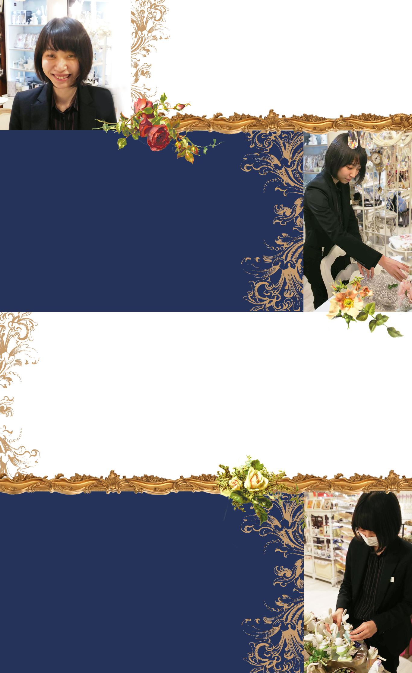 背中を見せてみんなを引っ張っていけるような存在を目指していきたいですね。 そのためにも、一組でも多くのお客様に喜んでいただけるような接客をし、 商品のこともよく研究して自分のキャパシティを 広げていかないといけないと思っています。