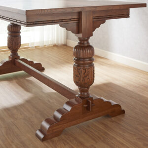 ツイストレッグって、名前の通り、木の脚をねじって(ツイスト)作るデザインなんです。らせん状に彫刻されたそのフォルムが、とてもダイナミックで美しい!この技法は、17世紀のイギリスのジャコビアン様式の家具でよく見られ、今でもずっと人気があります。