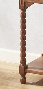 バーリー・ツイストも、バーリーシュガー・ターンに似たデザインで、太いねじりが特徴。オーク材などの重い木材との相性が抜群で、堂々とした存在感を放ちます。チェアの脚やテーブルの支柱部分に多く使われ、目立つ場所でその魅力を発揮します。
