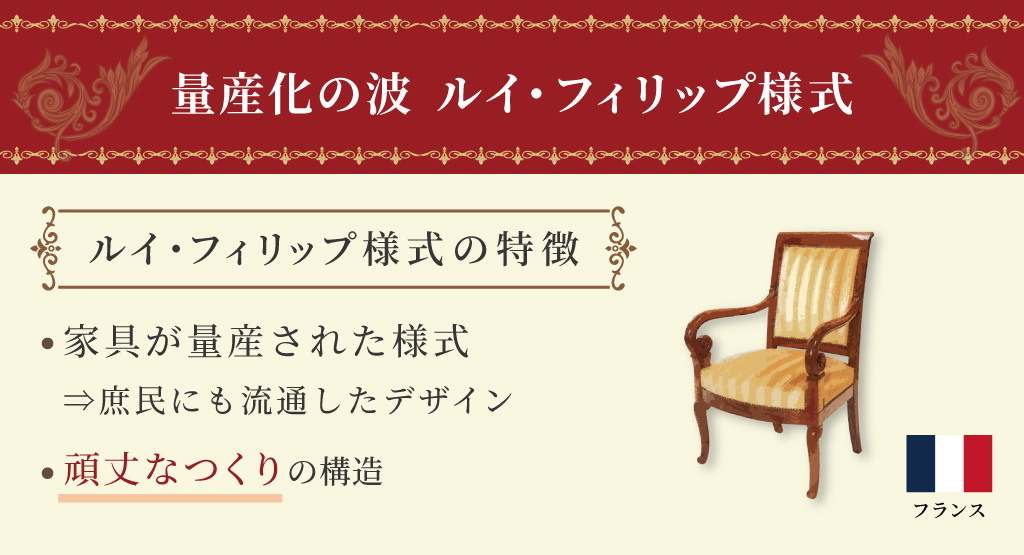 フランスの王ルイ・フィリップ(在位:1830年–1848年)の治世に流行した建築・デザイン様式です。