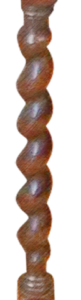 やや太めで、くるんとした丸みのあるツイストが特徴的。温かみがあり、どこか愛らしい雰囲気が漂います。アンティーク家具の中でも特にイギリス系のものに多く見られ、見ているだけで心が和むようなデザインです。
