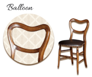 ヴィクトリア時代に流行した、風船のような丸みを帯びた背もたれです。布張りとの相性が良く、柔らかく親しみやすい印象を与えています。家庭的でエレガントな空間に適しており、女性的で優雅な雰囲気を演出しています。曲線を多用したデザインは、当時の装飾主義と快適性への関心を反映していました。