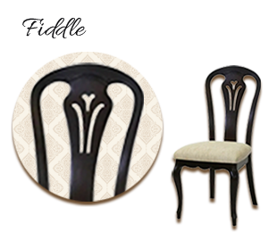 18世紀のクイーン・アン様式に見られる、ヴァイオリンの胴体に似たくびれを持つ背板が特徴。優雅な曲線と細身のシルエットが音楽的な美意識と上品さを表現しています。彫刻が施されることも多く、格式ある空間や応接室に使用されていました。英国貴族の生活様式を反映した、静かな気品を持つデザインです。