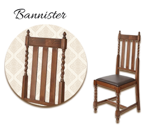 バニスターバックは、階段の手すり(bannister)のような縦棒構造を持つ背もたれで、17〜18世紀のコロニアル様式に多く見られます。建築的な安定感とクラシックな印象を与え、アメリカ独立期の家具に多く採用されました。シンプルながらも力強い造形は、実用性と伝統美を融合させたデザインとして評価されています。