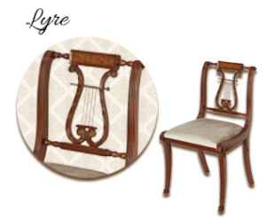 ライアバックは、古代ギリシャの楽器「ライア(ハープ)」の形状を模した背もたれで、18〜19世紀のチッペンデール様式やアンピール様式に見られます。音楽的で優雅な印象を持ち、彫刻的な装飾が施されることが多く、芸術性の高い空間に適しています。文化と美学を融合させた象徴的なデザインです。
