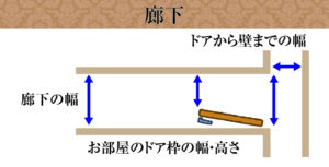 廊下は家具搬入の「通り道」として見落とされがちですが、実は搬入の成否を左右する重要なポイントです。特に輸入家具のように大きく存在感のあるアイテムを搬入する際には、以下の点にご注意いただくと安心です。