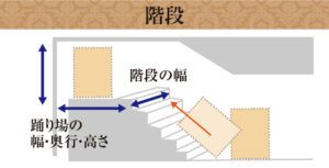 1.階段の「幅」「高さ」「奥行」を測定しましょう