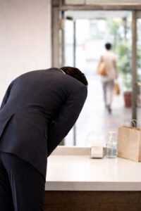 私たちのお店では、挨拶とお辞儀を