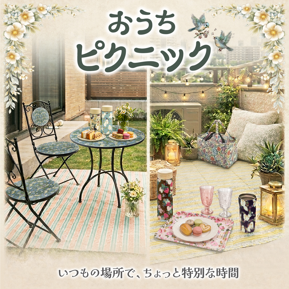 遠くに出かけなくても、お気に入りの『お庭』や『ベランダ』が心地よいピクニック空間に♪