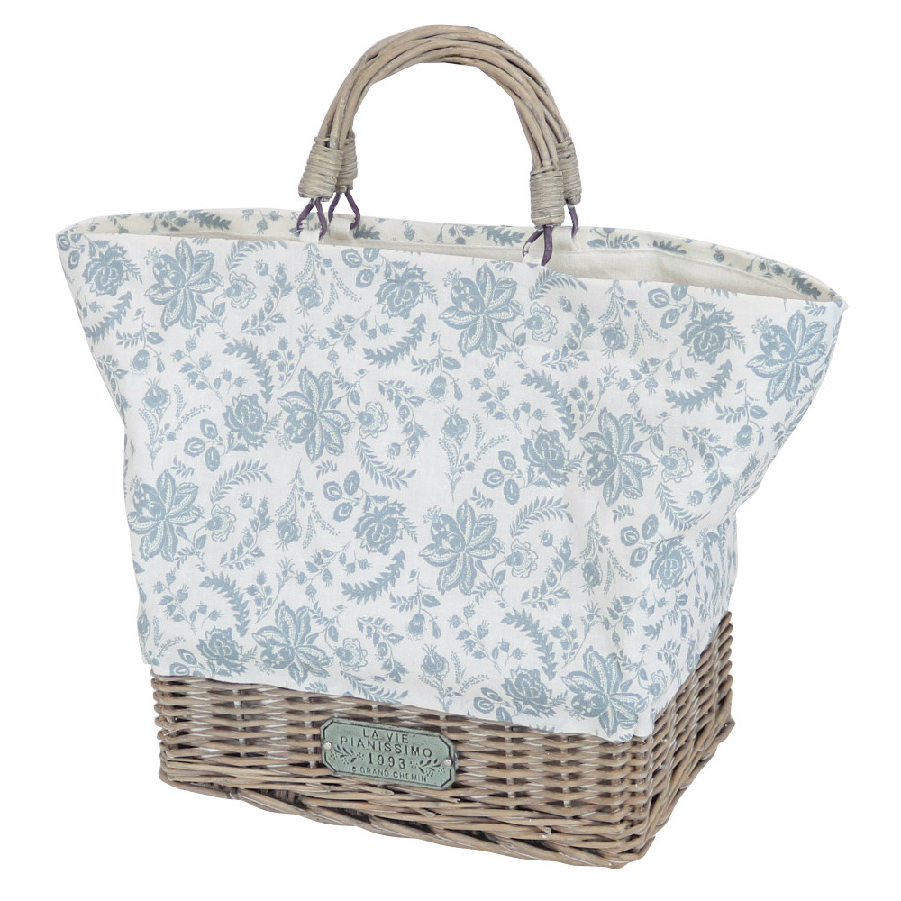 濃淡の加工が施されたバスケットに、さわやかな色合いの花柄生地。
