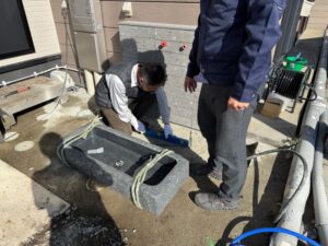 はじめはアンティークでお探ししたのですが、K様の求められるおサイズの物がなくオーダーメイド・一点物のガーデンパンを石で製作しました。
